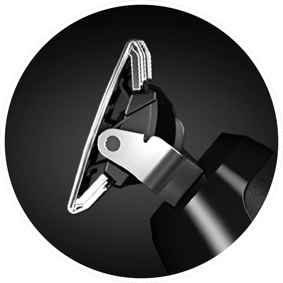 振動する刃が直接肌に触れない設計。